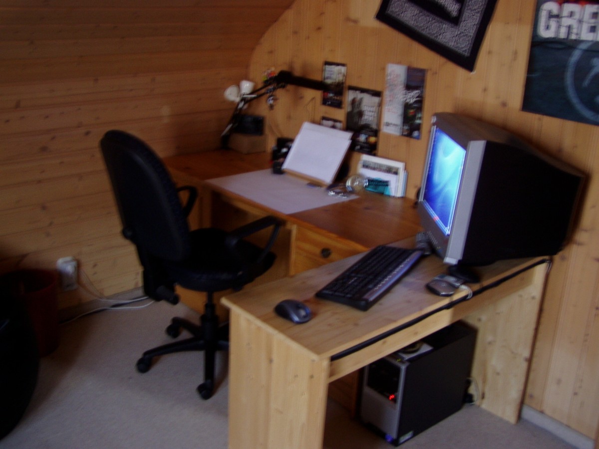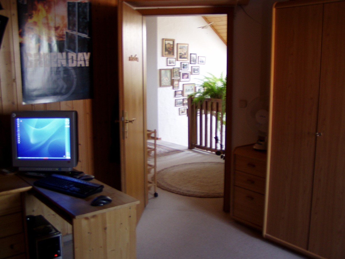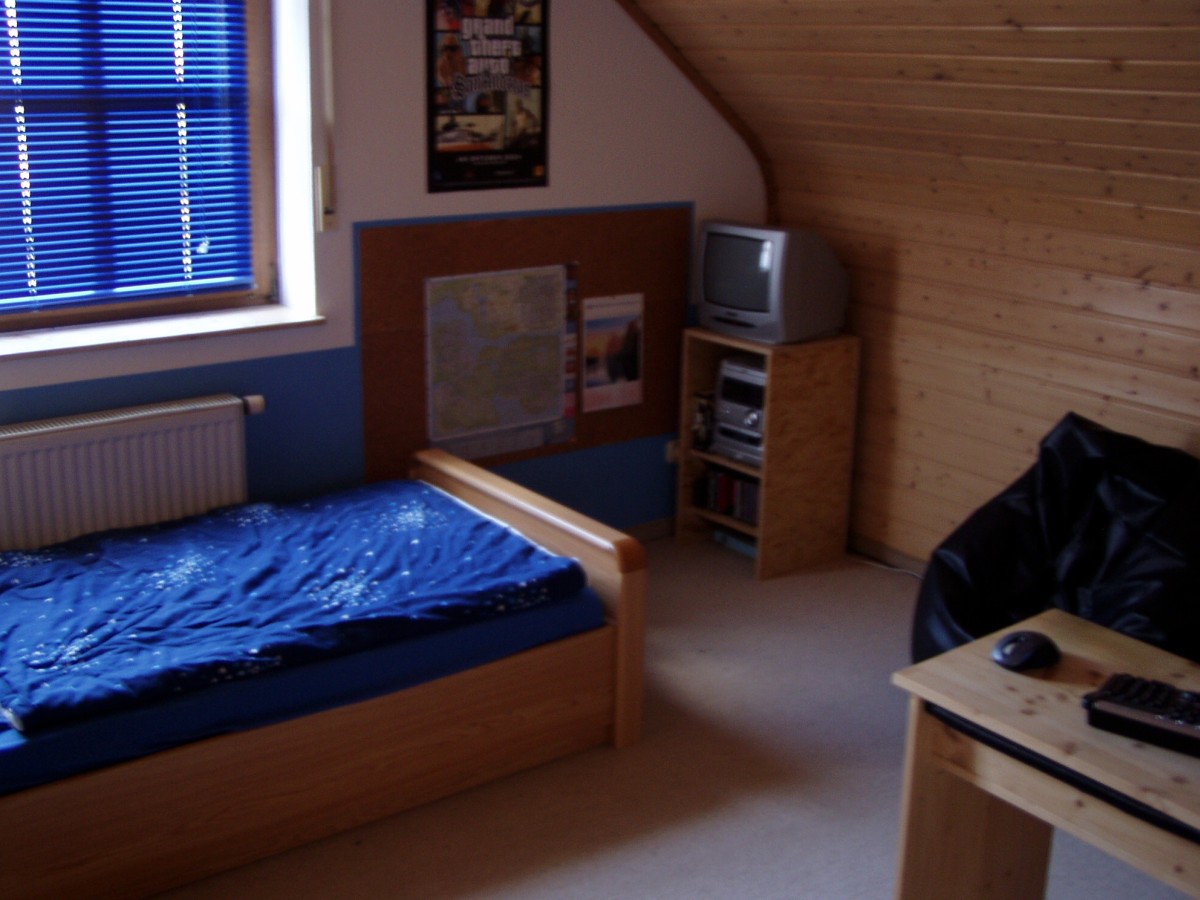 Das ist mein persönliches Zimmer. Hier hab ich alles was ich brauch. PC, Musik, Playstation und DVD, und wenn ich meine Ruhe haben will mach ich die Tür zu. Mittlerweile hab ich aber eine andere Couch drin.