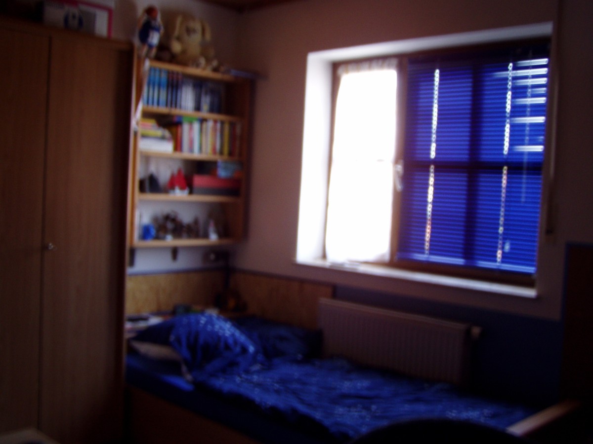 Ich weiss nicht, soll ich mein Zimmer fotografieren? Ich hab' das vor ein paar Wochen ein wenig umgestaltet, die Gardinen rausgeschmissen und mir stylishe blaue Jalosien bestellt, die für's grosse Fenster ist schon da, hängt auch, nur die vom kleinen Fenster fehlt noch, weil die länger dauert wegen Maßanfertigung. Sieht halt etwas unfertig aus...